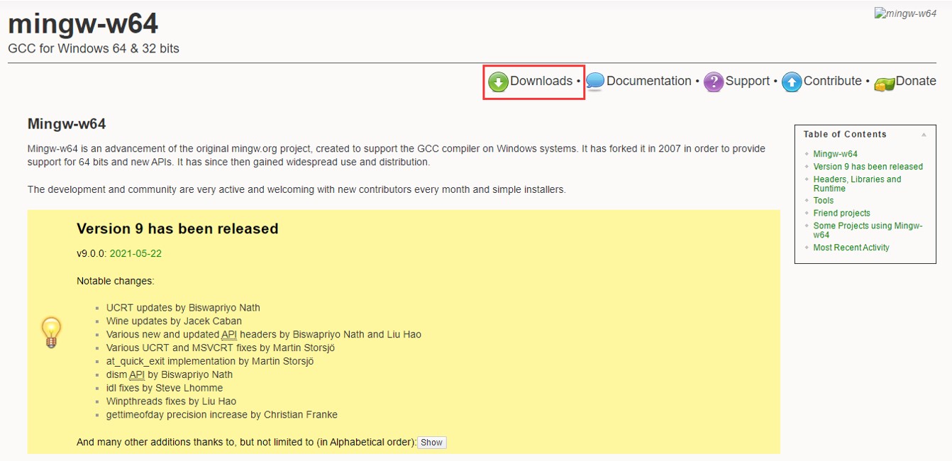 首先打开mingw官方网站下载适用于Windows系统的mingw。